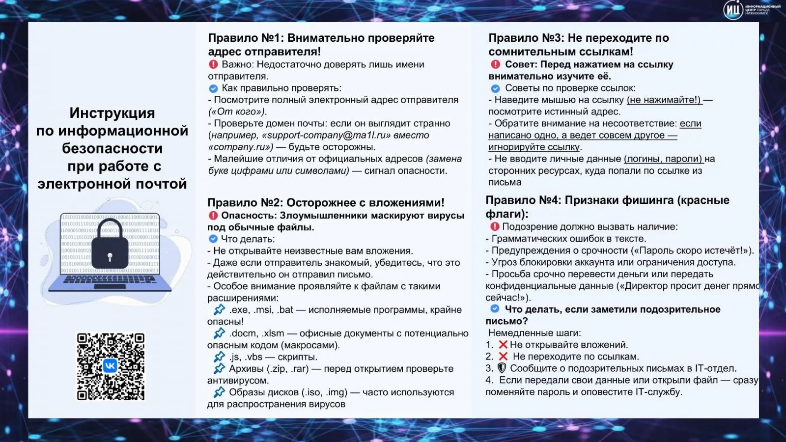 01.09.2025Инструкция по информационной безопасности при работе с электронной почтой
